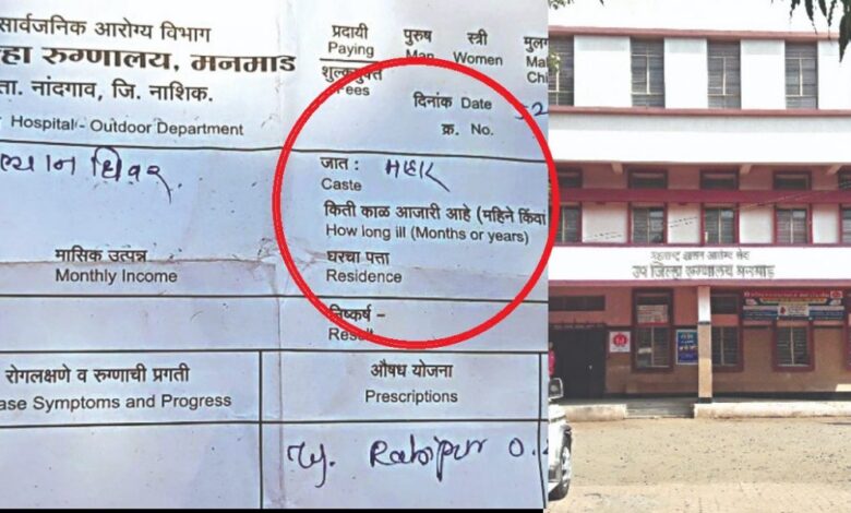 धक्कादायक! केसपेपरवर जातीच्या कॉलमचा उल्लेख, मनमाड रुग्णालयातील प्रकार