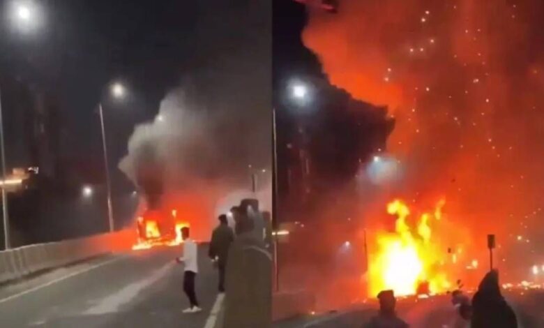 गरोदर महिलेला घेऊन जाणा-या अॅम्ब्युलन्सचा स्फोट; वाहनाच्या चिंधड्या