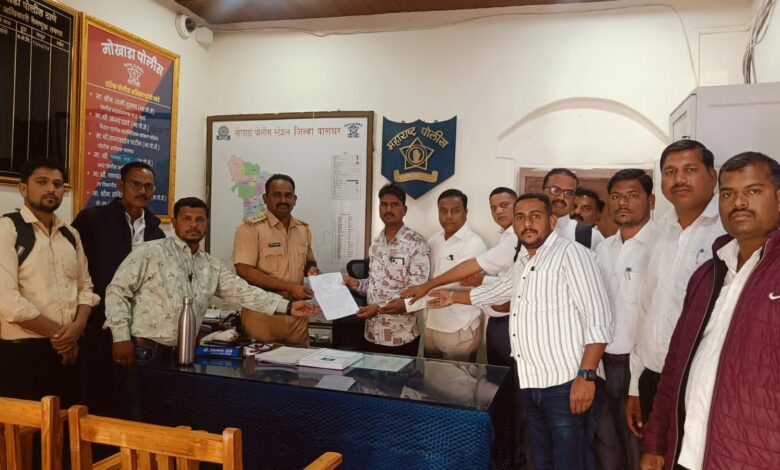 तहसीलदार मयूर खेंगले आणि सहाय्यक पोलीस निरीक्षक प्रेमनाथ ढोले यांच्याकडे निषेधाचे पत्र देत निषेध व्यक्त