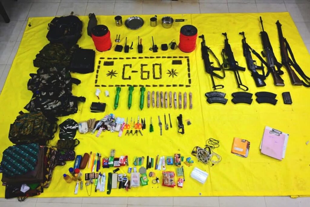 घटनेच्या ठिकाणाहून पोलिसांनी ३ एके-४७ रायफल, १ एसएलआर, १.३०३ रायफल अशी एकूण ५ अत्याधुनिक अग्निशस्त्रे जप्त केली आहेत. याव्यतिरिक्त १७३ जिवंत काडतूस, ३ बीजीएल, ७ मॅगझिन, कॉर्टेक्स वायर आणि मोठ्या प्रमाणावर माओवादी साहित्य तसेच दैनंदिन वापराच्या वस्तू जप्त करण्यात आल्या आहेत.