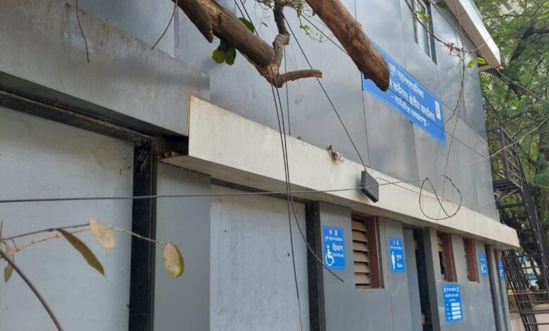 म्हात्रे पुलाजवळील स्वच्छता गृह धूळ खात पडून