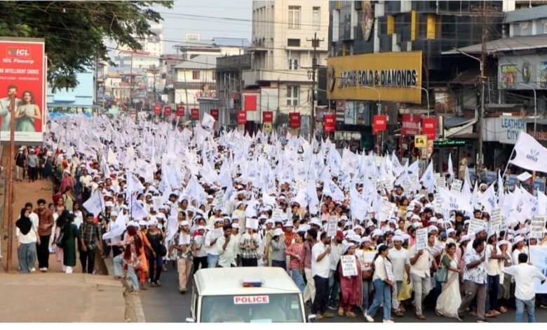 तिरुवनंतपुरम : केरळमधील खाजगी रुग्णालयातील परिचारिकांनी शनिवारी राज्यव्यापी प्रतीकात्मक संप पुकारला, त्यांचे किमान वेतन ४०,००० पर्यंत वाढवण्याची मागणी करत. या आंदोलनाचा एक भाग म्हणून, संपकरी परिचारिकांनी त्रिशूर शहरातून एक भव्य मिरवणूक काढली आणि सकथान स्टँडजवळ हक्क घोषणा अधिवेशनाचे आयोजन केले. राज्यातील सुमारे ५०० रुग्णालयांमधील प्रतिनिधींनी या निषेधात भाग घेतला.