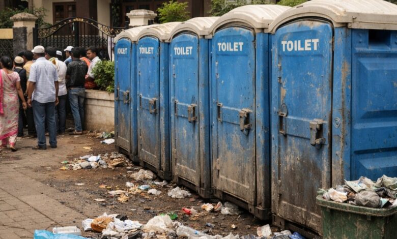 मुंबई : डॉ. बाबासाहेब आंबेडकर यांच्या मुंबईतील दादर येथील ‘राजगृह’ या ऐतिहासिक निवासस्थानाला १४ एप्रिल रोजी येणाऱ्या अनुयायांसाठी मुंबई महापालिकेने राजगृहा समोरील पदपथावर अनेक फिरती शौचालय उभारली होती. स्थानिकांची या दिवसाबाबत तक्रारही नव्हती. तथापि आज १० दिवस उलटून गेले तरीही असंख्य अनुयायांनी वापरलेली ती फिरती शौचालये त्याच अवस्थेत असून मुंबई महापालिकेने अजून ती हटविलेलीही नाहीत. स्थानिक नागरिकांच्या तक्रारीची दखल सुद्धा महापालिकेने घेतलेली नाही.